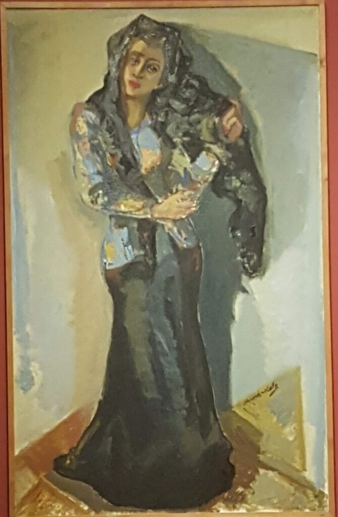 A portrait of a Spanish Jewish woman removing her hair wrap — captured at the Haifa City Museum in 2018.